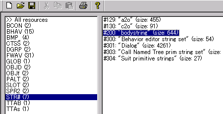 iffファイルを開き、STR#の#200:"bodystrings"に、変更したいスキンのデータをインポートします。