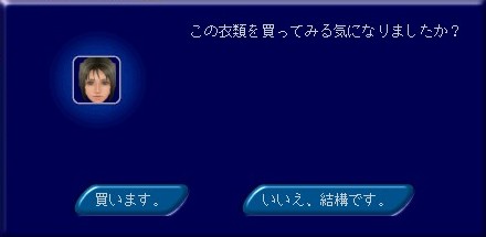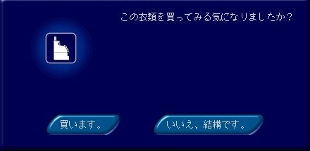 洋服を試着したときに出る「この衣類を買ってみる気になりましたか?」のダイアログ。