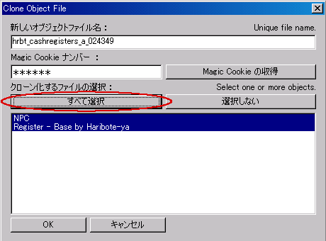 [オブジェクト内のファイル選択]で